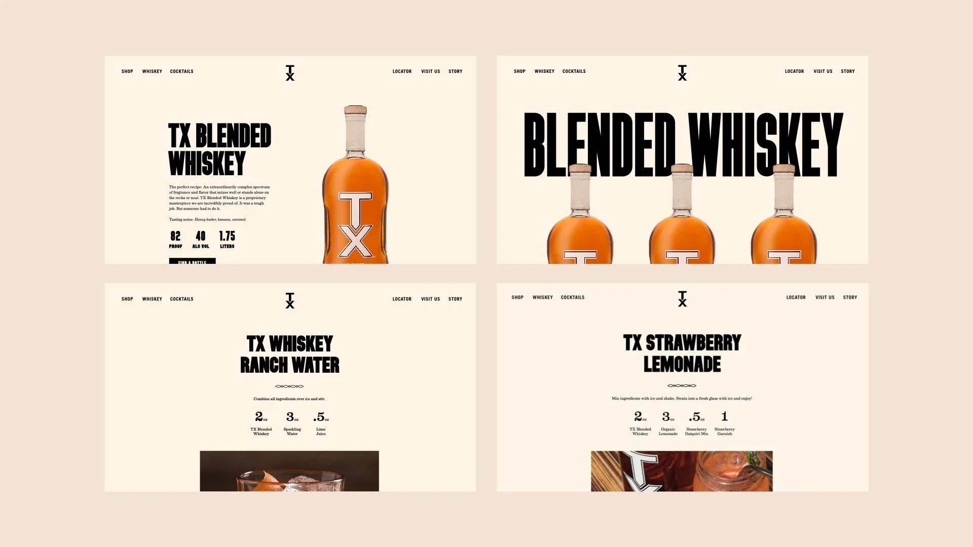 Knoxville based agency Tombras brought us on to help redefine TX Whiskey’s brand identity. TX is a staple so it was important that we stayed true to the brands roots and not completely overhaul the strong foundation that brand had already built. We started with the iconic TX monogram, improving the geometry, correcting the extended versions, and creating tighter rules around usage. We then updated the color palette for more variety and introduced a few new typefaces that better reflected the brands bold personality. To broaden the visual style, we also developed a series of typographic lockups, iconography, and illustrations for signage, merch, and packaging. We had the opportunity to design TX’s line of canned cocktails too, which we kept simple, highlighting TX on the front and each flavor through a colored band at the bottom.