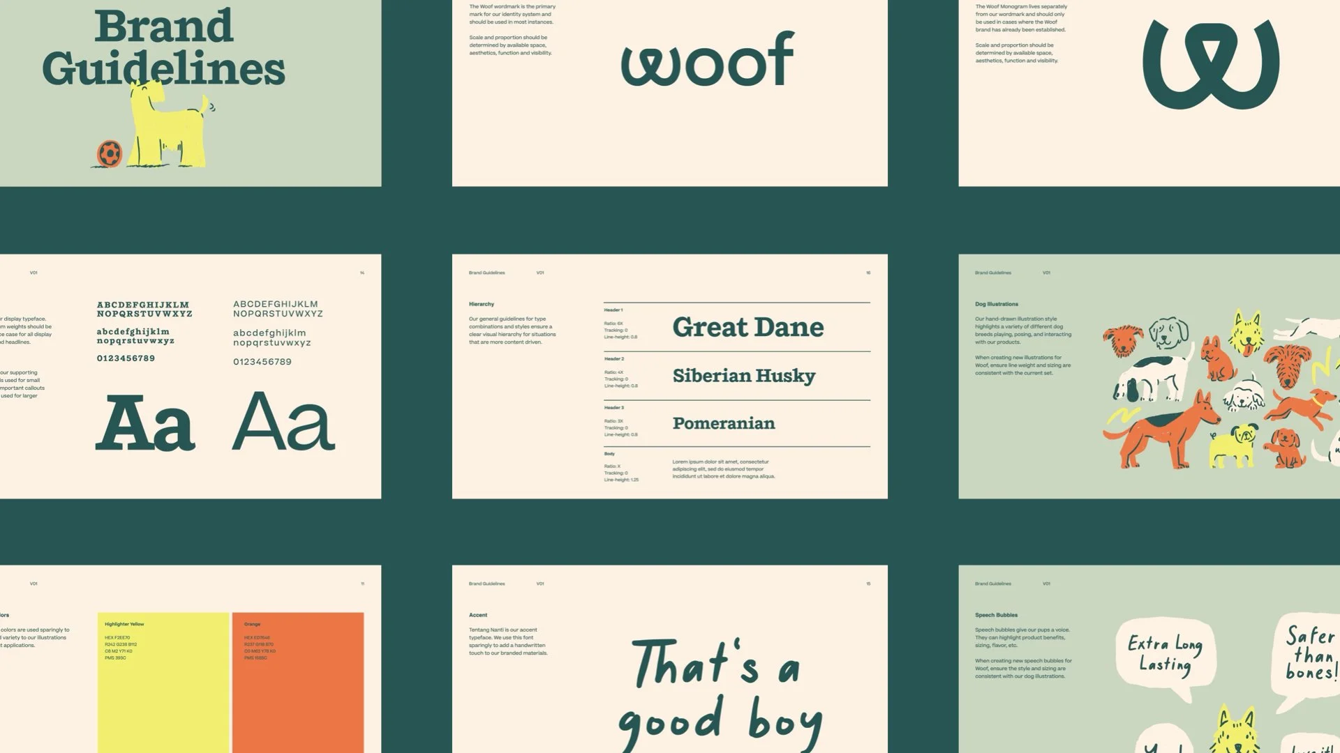 The Woof’s brand needed to reflect the deep bond between dogs and their humans through visual storytelling. We led a complete rebrand including a refined logo system, custom illustration, packaging architecture, and art direction that celebrates joy, play, and connection.