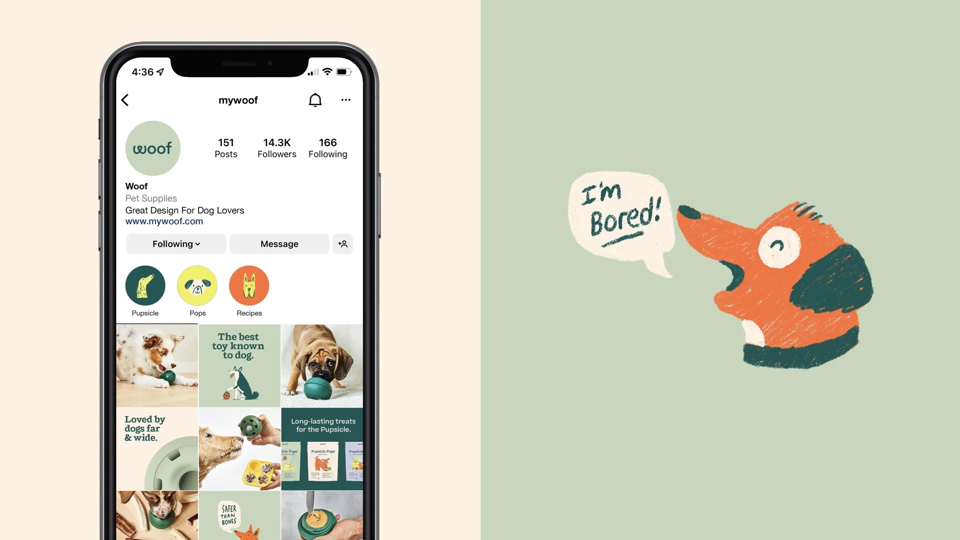 Woof founder, Daniel, came to Break Maiden to evolve his beloved dog toy brand into something more expressive, and emotionally resonant.